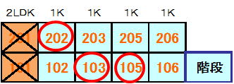 106 206号は端部屋で出窓付 |